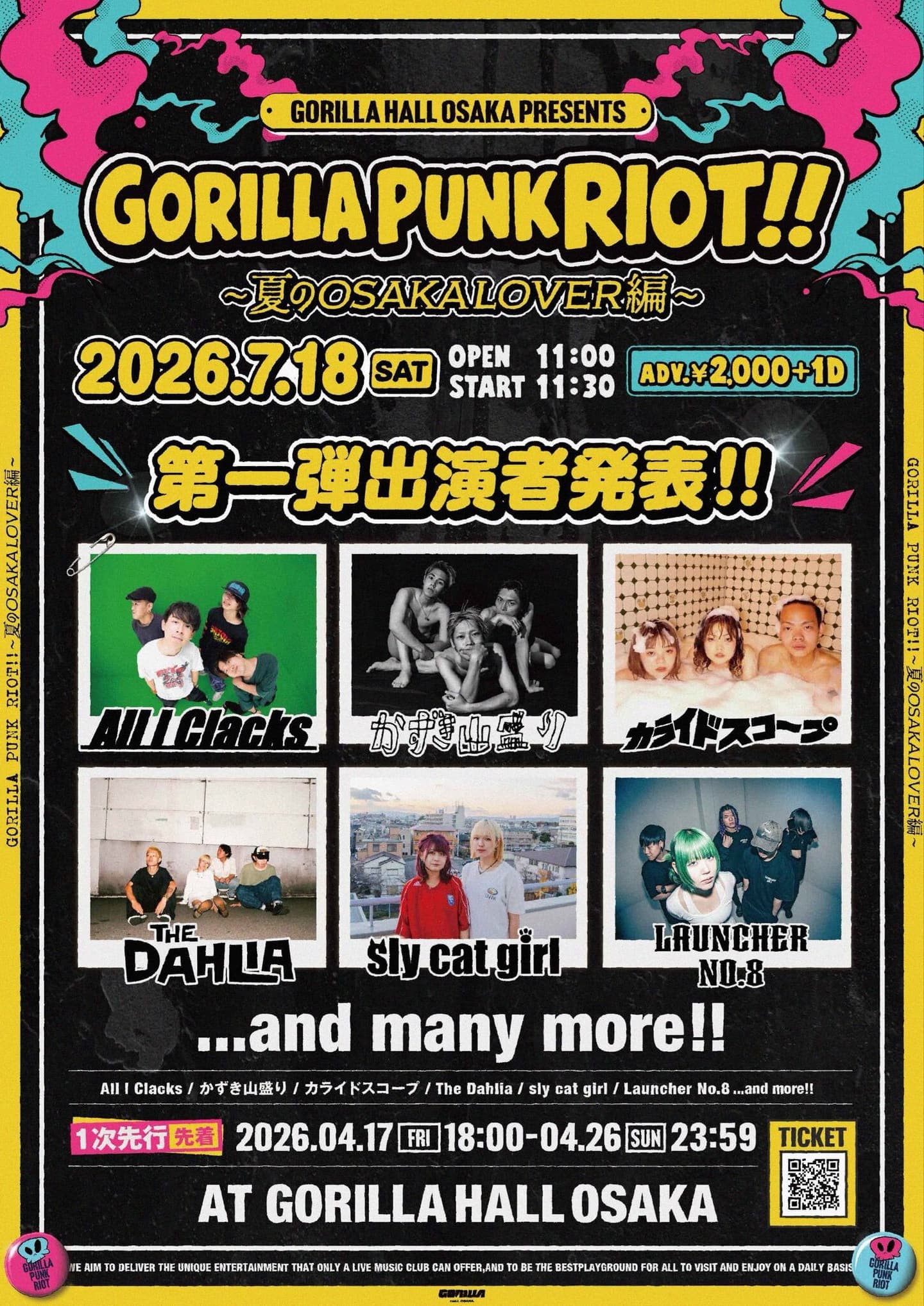 NEW2026/4/17up GORILLA HALL OSAKA Pre. 『GORILLA PUNK RIOT!!~夏のOSAKA LOVER 編~』出演決定!