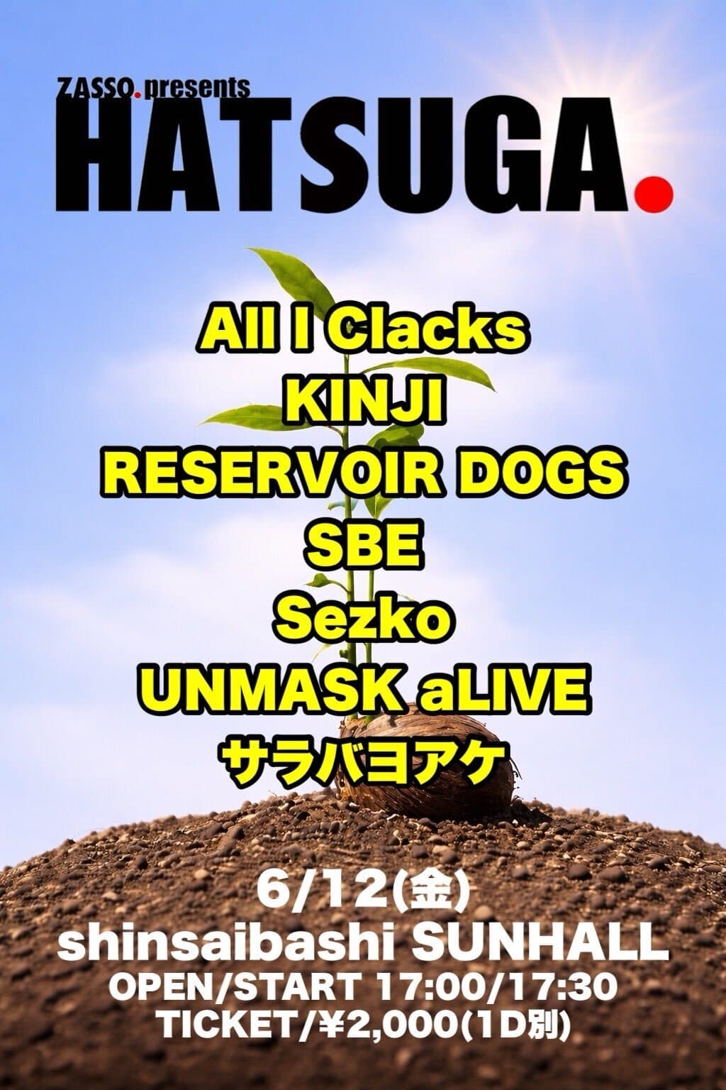 NEW2026/4/17up ZASSO. presents 『HATSUGA. at shinsaibashi SUNHALL』出演決定!
