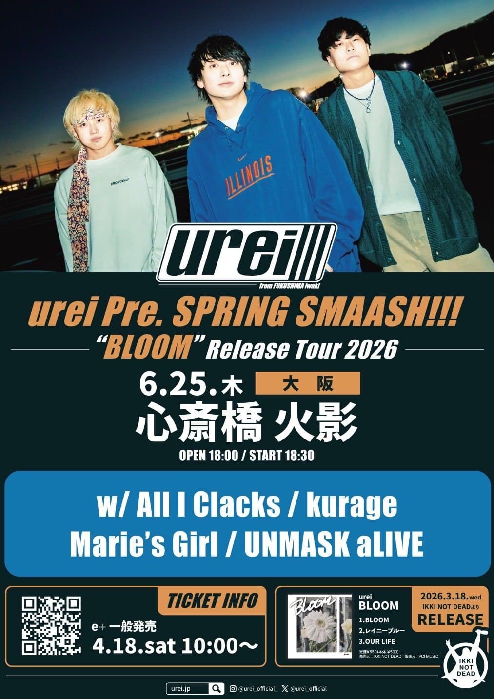 NEW2026/4/17up urei Pre.『SPRING SMAASH!!! “BLOOM” Release Tour 2026』出演決定!